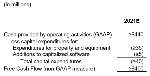 The following table reconciles Teradata’s projected cash provided by operating activities under GAAP to projected free cash flow for fiscal 2021.