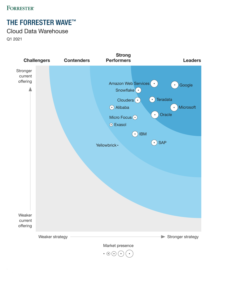 ² The Forrester Wave™: Cloud Data Warehouse, Q1 2021 published March 24, 2021 by Noel Yuhanna.