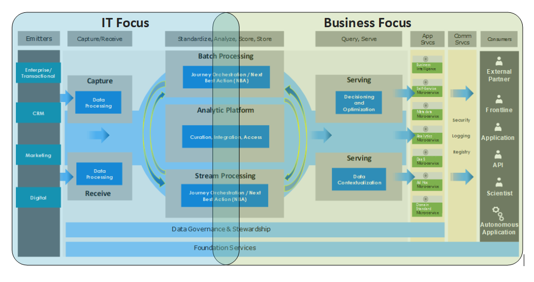 So how do we get there from here? We have Legacy Integrated Data that has been labelled too slow and too restrictive and Modern Data Lakes that commonly suffer from curation, security, usability and data duplication issues. The answer is looking at the problem from right to left, instead of left to right. IT is concerned with data management (the left side of the equation). And correctly so. Data management is the domain of tools, security and process. And the business is concerned with analytics and getting value from an organization’s data (the right side of the equation).