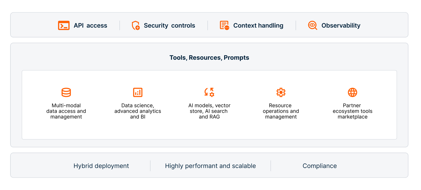 • A deep catalog of more than a hundred production ready tools; from database queries and DBA functions to ML, vector search, and RAG might be difficult to manage for LLMs, however, because tool exposure is governed per role, each agent stays within a clean and compliant sandbox.