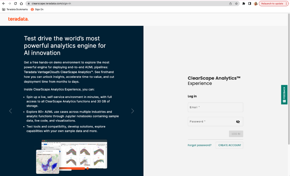Create your free ClearScape Analytics Experience account or sign in. Here, we can run our code in a Jupyter notebook environment and access data for our upcoming piece. This site enables us to configure free, fully functional, lightweight cloud environments, featuring ClearScape Analytics on Teradata VantageCloud. Within these environments, we can create and alter databases with limited data loads. The same capabilities are available on all Teradata’s platforms, supporting large-scale data processing with hundreds of nodes and petabytes of data.